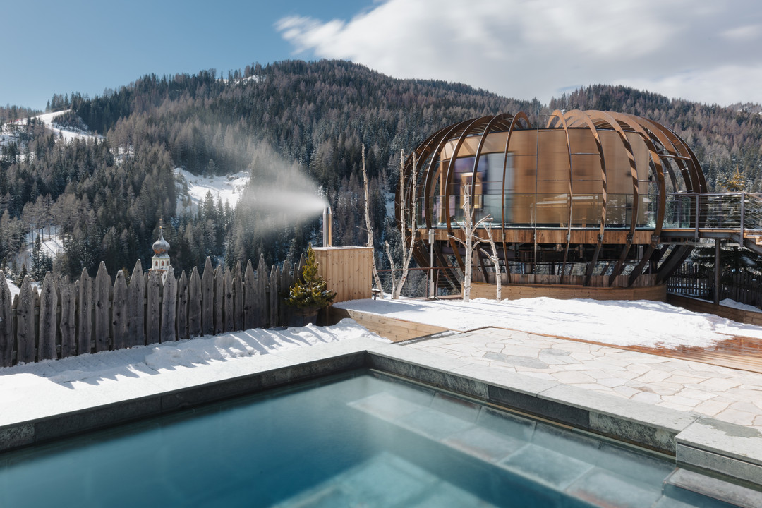 Something new awaits you to experience the feeling of freedom and light fluctuation by touching the nature and being in seventh heaven: The New Sky pool. An awesome 25 meters Sky Pool that represents “The New Fanes Pearl”. A once-in-a-lifetime experience definitely. You can enjoy the panoramic view on a beautiful sunny day, comfortably lying on a bed next to the pool or plunging into the warmth of the Jacuzzi, while sipping a cocktail or a refreshing fruit juice.