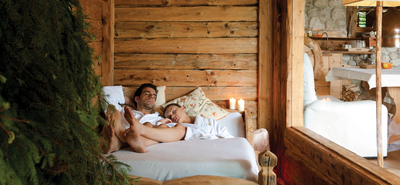 - Two alpine bathhouses with saltwater brine bath (€39.00 per person for the bathhouse ritual), Swiss stone pine steam bath, cozy relaxing area, tea kitchen with distillery, couples treatment room, Acqua-Solesauna and 5 cozy suites with open fireplace and whirlpool tub.