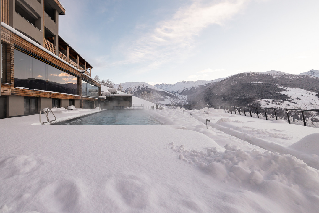 Cosa c'è di più bello che tuffarsi e farsi avvolgere dall'acqua rivitalizzante, ammirando il panorama mozzafiato a valle e sulle cime circostanti?