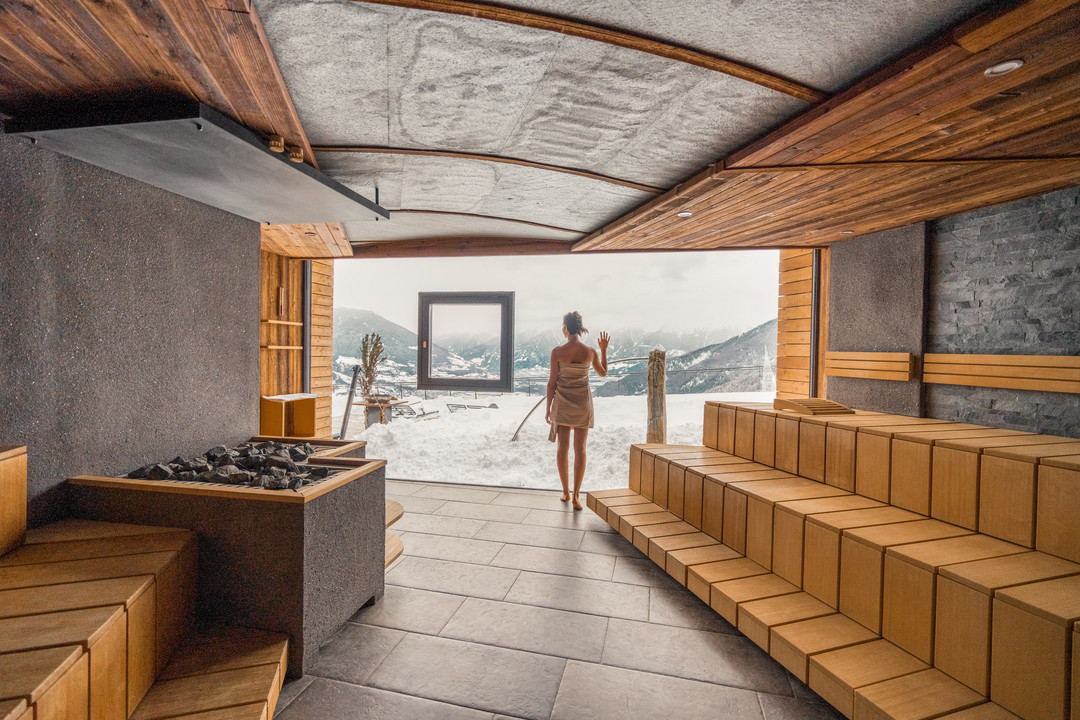 Dopo una bella sudata in sauna non c'è niente di meglio che rinfrescarsi e infine rilassarsi in una delle sale relax ammirando il panorama mozzafiato.
