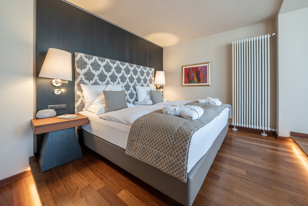 All'Hotel Mignon Merano Park & Spa vi aspettano camere e suite che non sono solo un posto dove dormire. Sono il vostro rifugio personale dove l'anima trova pace. Ogni camera e suite è unica, progettata per creare un'atmosfera di benessere e armonia. Dai colori tenui degli arredi ai materiali accuratamente selezionati, tutto è pensato per offrirvi un'oasi di relax. Godetevi la vista dell'incantevole parco dell'hotel che entra dalle finestre.