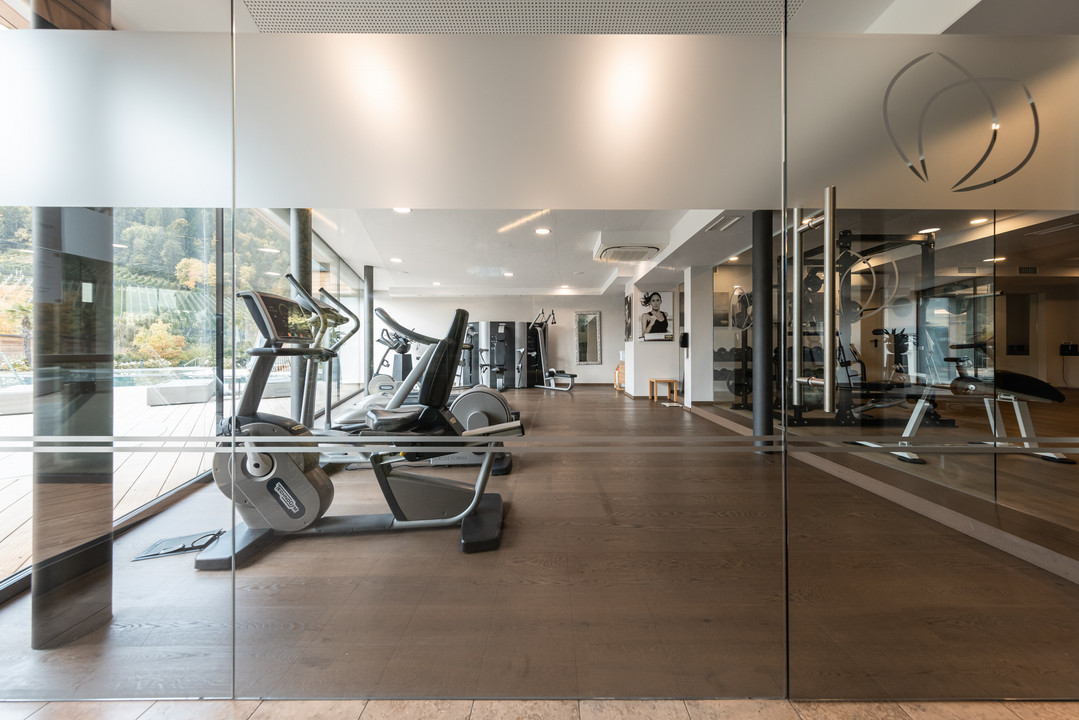 - Modernes Fitness-Studio mit Blick ins Freie und Hightech-Geräten von Technogym, sowie großzügigem Gymnastikraum