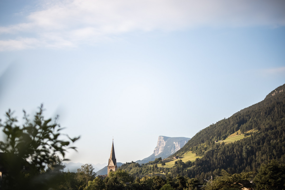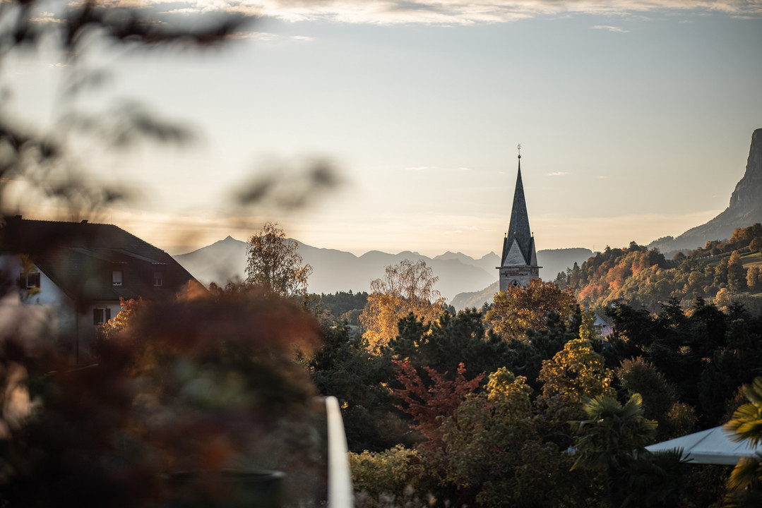 Völlan bei Meran ist ein Sonnenort. Ein Ort zum Durchatmen, mitten im Grün. Sanft fügt sich hier das ALPIANA ins Landschaftsbild von Obstgärten und grünen Wiesen, Kastanienhainen und Bergwäldern.