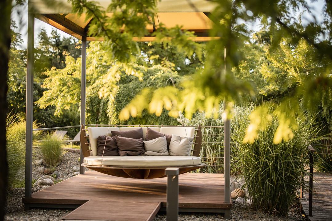 - 17.000 m² mediterrane Park- und Poolgarten-Landschaft mit Palmen, Kräuter- und Blumenbeeten, Kuschelecken und Hängeschaukeln