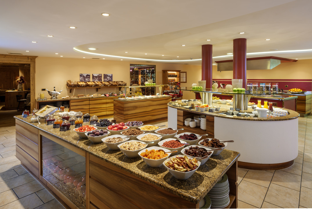 - Abwechslungsreiche 3/4-Genießerpension mit reichhaltigem Frühstücksbuffet, Nachmittagsmarende mit Herzhaftem & Süßem und abendlichem 5-Gänge-Wahlmenü.