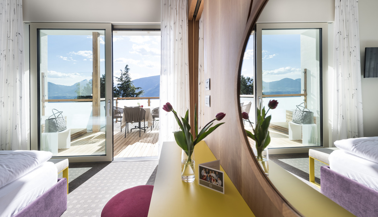 Das Hotel in Schenna liegt auf einem sonnigen Hang oberhalb der Kurstadt Meran mit traumhaftem Ausblick auf die Südtiroler Bergwelt. Schenna gehört zu den sonnenreichsten Orten in Südtirol und ist zu jeder Jahreszeit eine Reise wert: Im Frühling, Sommer und Herbst bieten sich einfachere und schwierigere Wanderwege sowie verschiedene Biketrails an. Das Hotel in Schenna ist ein Paradies, sowohl für aktive als auch für ruhesuchende Gäste.