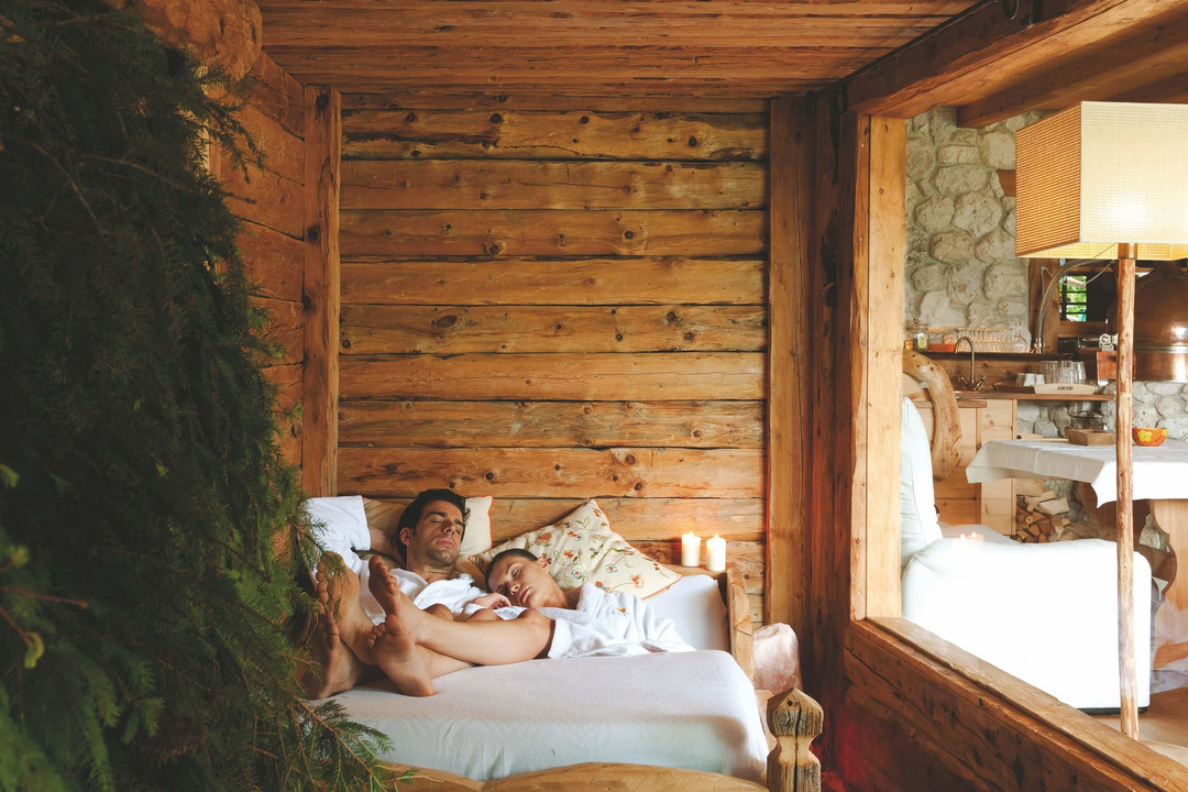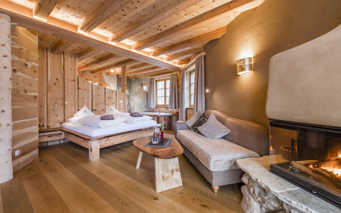 - Zwei AlpinBadehäuser mit Salzwasser-Solebad (39,00 € pro Person für das Badehausritual), Zirben-Dampfbad, Kuschelalm, Gradieranlage, Teeküche mit Brennerei, Paar-Behandlungsraum, Panoramaruheraum, Acqua-Solesauna sowie 5 kuscheligen Suiten mit offenem Kamin und Whirlwanne.