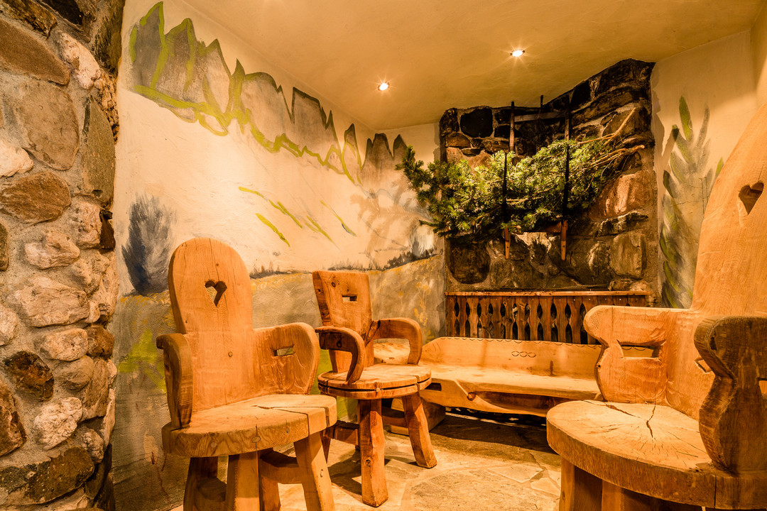 - Wildromantik-Wellnessparcour auf 4 Ebenen mit Innen- und Außenschwimmbad, zwei Whirlpools, Natur-Badeteich sowie 10 verschiedenen Saunen mit vielen windgeschützten, ruhigen Kuschelecken. Die Bachsauna am Waldrand sowie unsere Acqua-Solesauna im Badehaus sind von 8-22 Uhr in Betrieb.